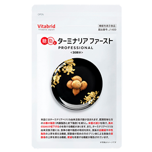 ターミナリアファースト プロフェッショナル4 機能性表示食品(届出番号 I1041) 機能性表示:本品にはターミナリアベリリカ由来没食子酸が含まれます。本品は、肥満気味な方のお腹の脂肪(内臓脂肪と皮下脂肪)を減らし、体重が減少するのを助け、高めのBMIが低下するのを助ける機能があります。また、ターミナリアベリリカ由来没食子酸には、食事の糖や脂肪の吸収を抑え、食後の血糖値や中性脂肪の上昇を抑える機能、尿酸値が高めの方の食事のプリン体による食後の尿酸値の上昇を抑える機能が報告されています。