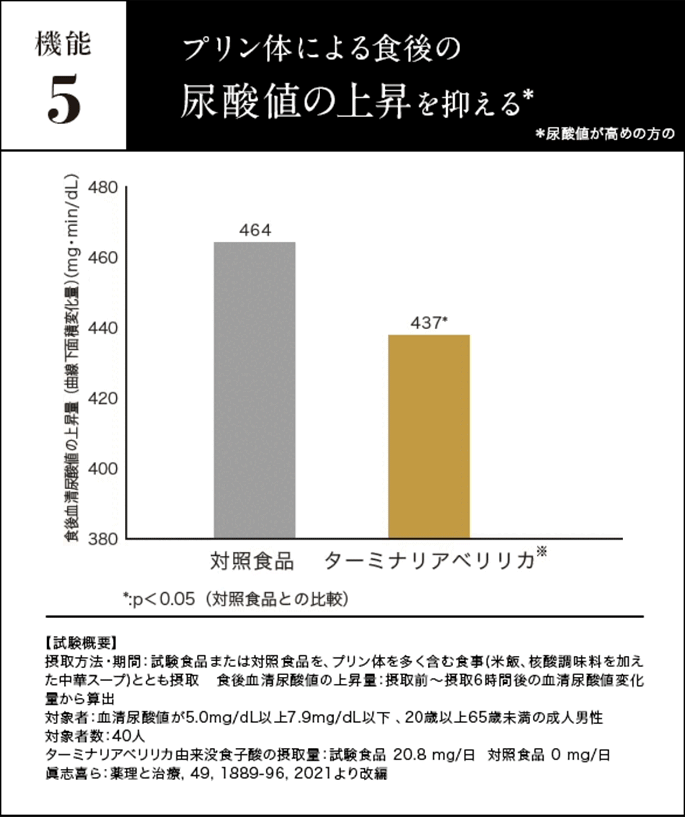 ・食後の尿酸値の上昇を抑える※1 ・臨床試験にて計9個の項目で効果が実証 |